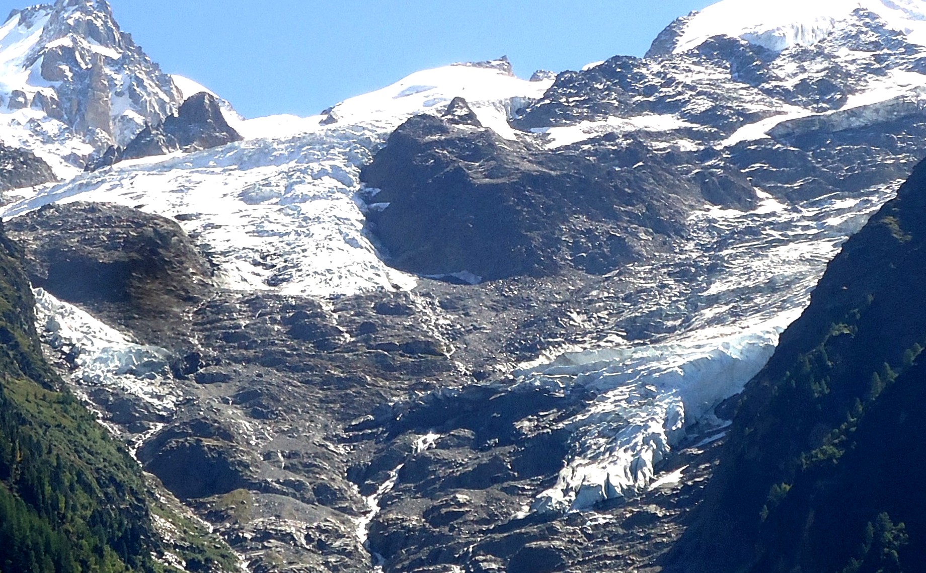 Après ces catastrophes, un gigantesque système paravalanches a été construit. Mais !!! malgré son énormité, il a été très largement sous-dimensionné puisqu'il suffit d'un éboulement de séracs avec une petite chute de neige pour le combler en tout début de saison, comme l'an dernier... et alors derrière, il peut arriver une avalanche même minime et elle sera très à l'aise sur ce tremplin pour venir s'affaler en fond de vallée passant par dessus le Novotel. |